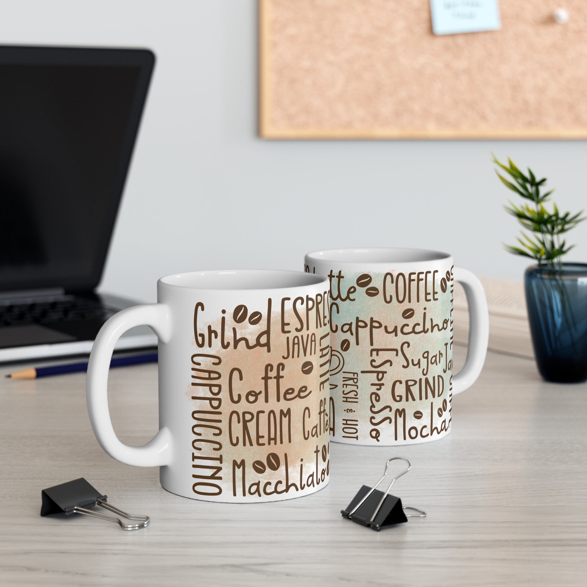 Coffee Lover Porselen Kupa - Cappuccino • Espresso • Latte • Mocha Tasarımlı