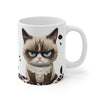 “Mükemmel miyim? Değilim. Daha iyi olmaya çalışıyor muyum? Hayır.” yazısı ve somurtkan kedi illüstrasyonuyla bu kupa, kendisiyle barışık ve lafını sakınmayanlar için tasarlandı. Minimal renk paleti, güçlü mesajı ve karakterli çizimiyle günün her saatine mizah katıyor.